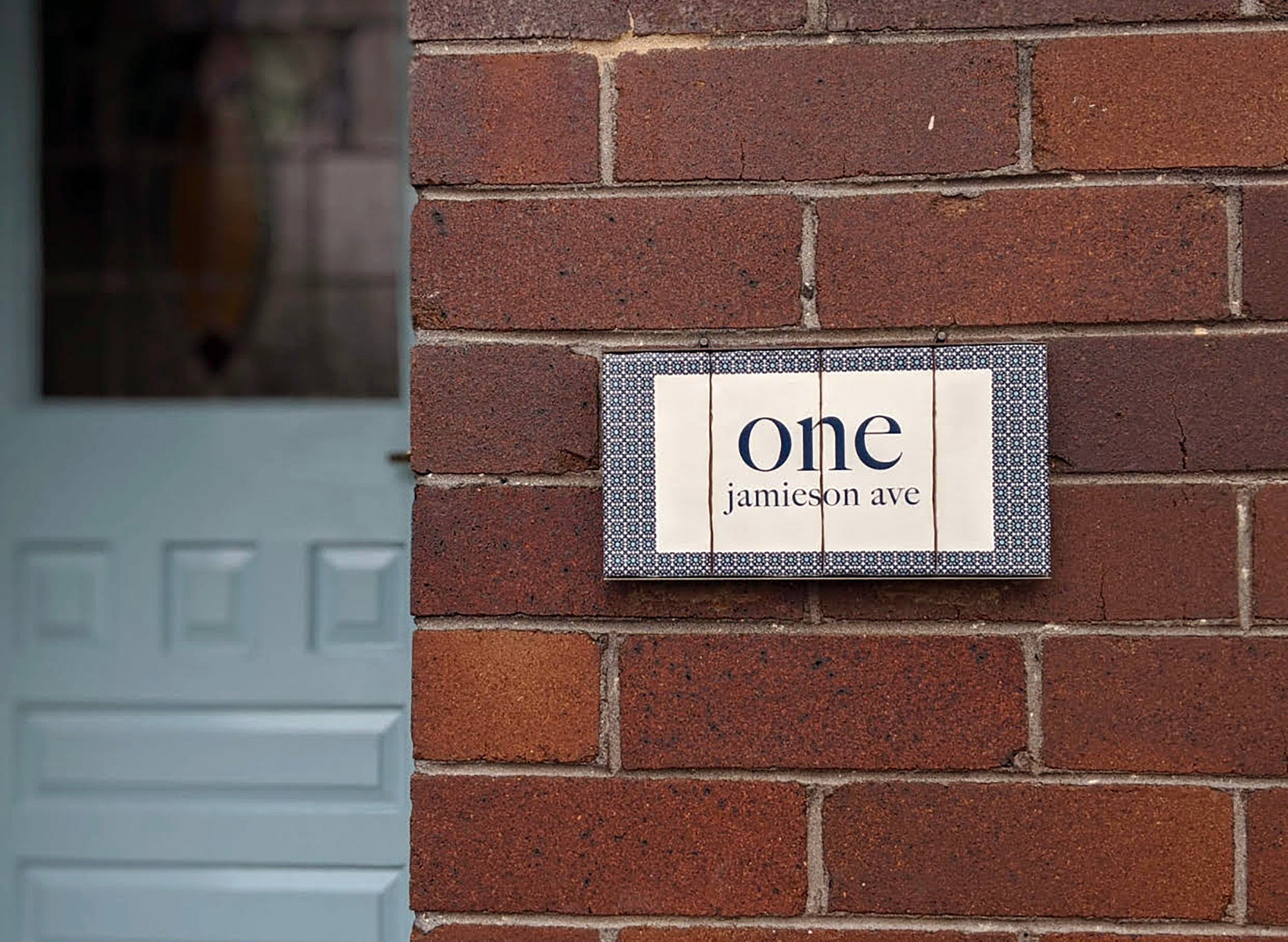 Our house numbers are printed using commercial UV print processes and mounted in galvanised or powder coated steel frames. We do however recommend that they be placed in a sheltered area, away from direct weather and under cover. We do not recommend that our signs be placed on the door, rather a fixed location to avoid the chance of displacement due to door movement.